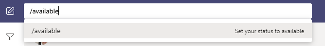TEAMS Status Change: You can use the search bar to change your status. Key in slash “/” , followed by the status you would like to change.