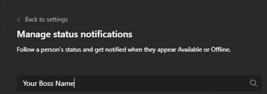 So, here is how you can set notification to track someone’s status in TEAMS: